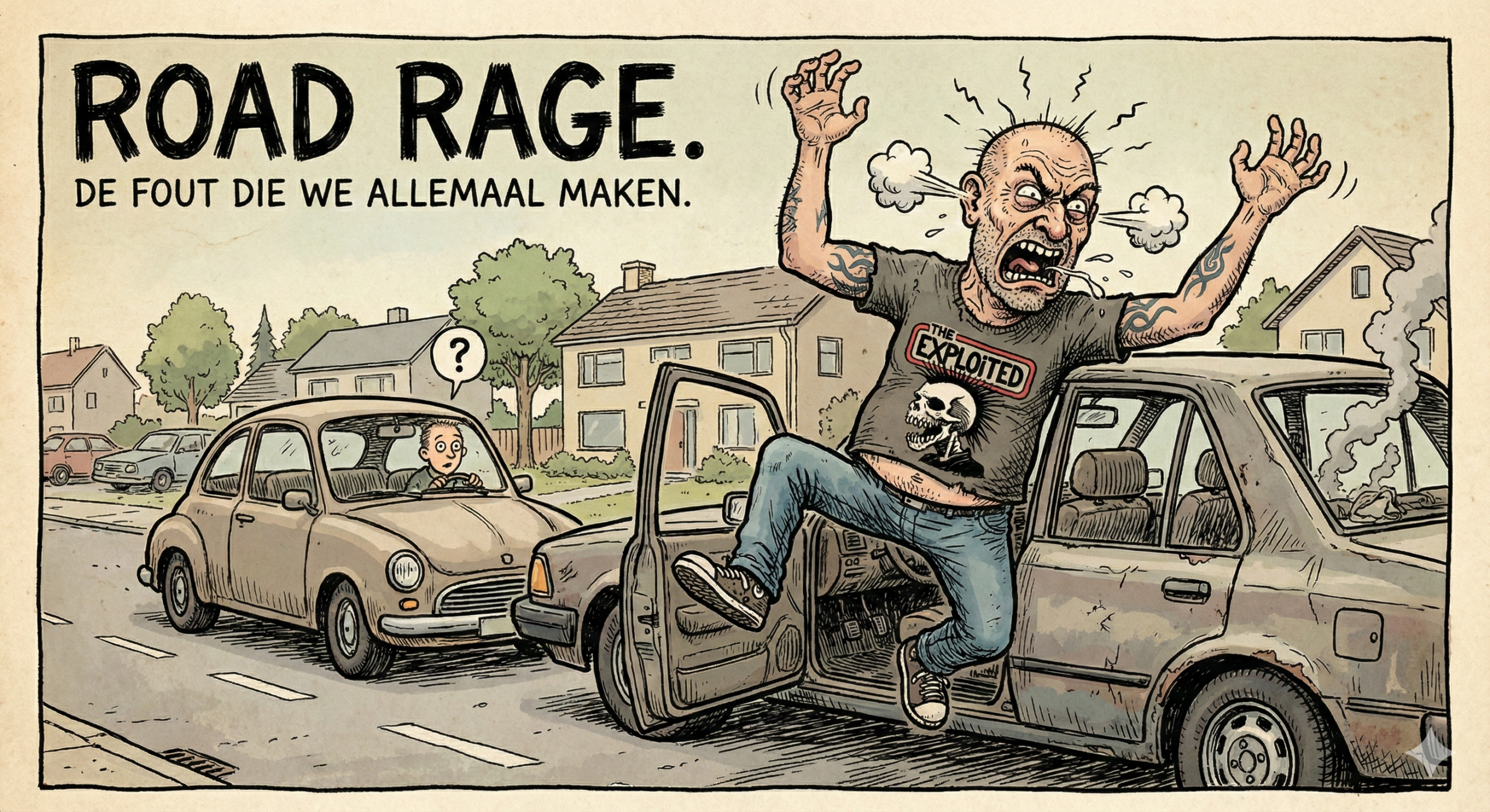 Ik ga van nul naar BATSHIT CRAZY in ongeveer één seconde. Iemand snijdt me af en ik spring letterlijk uit mijn auto.